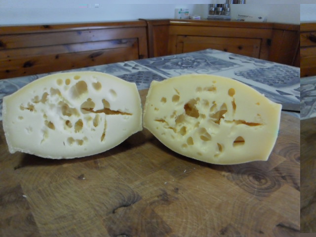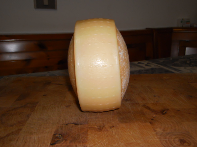 Scaldare il latte crudo a 38°C, aggiungere il 3% di siero innesto (a scanso di equivoci, 30 ml per ogni litro di latte utilizzato). Aggiungere 0,5 ml di caglio liquido per ogni litro di latte utilizzato. Passati 2 minuti dalla presa (quando il latte smette di essere tale e diventa fosfoparacaseinato di calcio) iniziare il taglio con la frusta, prima lentamente e poi sempre più velocemente mano mano che sentiamo diventare la cagliata più dura. Al raggiungimento della grandezza di un chicco di riso, accendiamo il fuoco e tenendo agitata la cagliata con la frusta scaldiamo a 50°C. Arrivati a 50, sempre mescolando, spegniamo il fuoco e aggiungiamo alla cagliata 5 gr di sale grosso per ogni litro di latte utilizzato, mescoliamo per altri 30 secondi e lasciamo depositare la cagliata sul fondo della pentola per 20 minuti, Prendiamo la cagliata e facciamo una palla e la mettiamo negli stampi e la pressiamo per 24 ore in un ambiente a 20-25°C, durante le quali la rivolteremo almeno 4 volte. Passate le 24 ore la immergiamo in una soluzione di sale al 20% per 24 ore. Stagioniamo a 12-14°C con 90% di umidità per almeno 3 mesi. Dopo 10 giorni di stagionatura iniziare gli impacchi con acqua e sale ogni 2 giorni fino ad arrivare ai 30 giorni e nei successivi 2 mesi girare e impaccare una volta a settimana