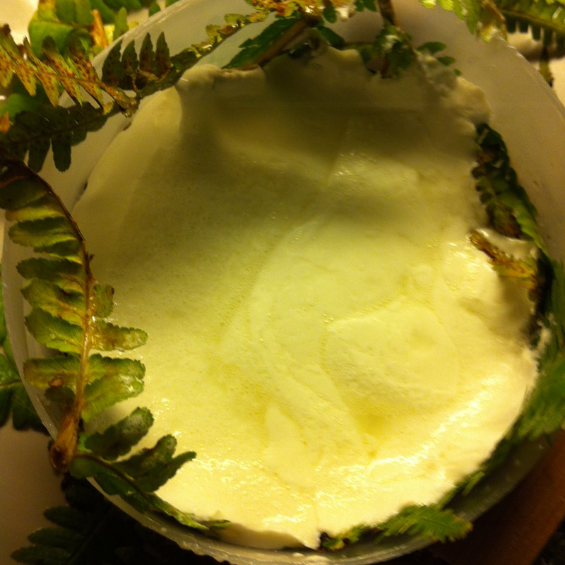 Ed ecco qua i risultati. Oltre alla fascera con le foglie di felce (tradizionale), ho fatto anche alcuni esperimenti per poi poter valutare fino a quanto le felci contribuiscono alla buona riuscita di questo formaggio: due fuscelle bianche, una con foglie di rucola e una con foglie di cavolo verza... Domani si assaggiano (con un filo di ottimo olio EVO  ), e si sperimentano abbinati in qualche preparazione. Allegato:
