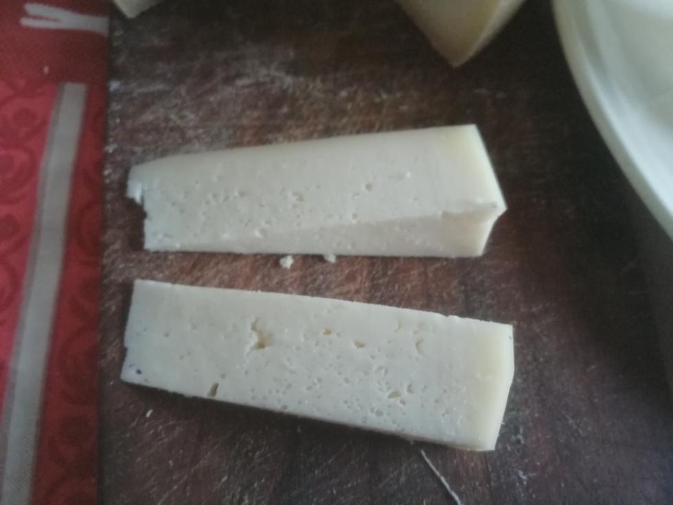 Oggi ho provato a tagliare la prima formetta da circa 1 kg. 1 mese di stagionatura. Utilizzato caglio vegetale. Estratto di fiori di Cardo ( Cynara Cardunculus) e Galium Verum. L'odore cattivo e' solo sulla crosta. L'interno e' in parte amarognolo e forse un po' stopposo perche' la forma e' stata pressata troppo. Manca un po' di sale. Sicuramente con i prossimi esperimenti i risultati saranno migliori. Ho 3 forme in cantina da 10, 13 e 15% di sale. Prossimamente faro' una forma pressandola meno. Per ora le 3 forme, ormai asciutte, sono ancora su piatti appoggiati su assi. Ho comprato sabato due assi di pino per alimenti. C'e' una questione su cui sto riflettendo. Poiche' le assi nuove, una volta posizionate, non saranno inclinate ma in posizione orizzontale, il liquido o il siero che escono nei primi giorni dalla forma resteranno in prossimita' della forma, non potendo sgrondare come in fase di pressatura, quando le forme sono sul lavandino di cucina che e' leggermente inclinato. Ora tale liquido, in cantina, nei primi giorni, stazionando vicino alla forma, potrebbe far puzzare il legno o la forma stessa. Che si fa? Devo spostare la forma ogni giorno, oltre che girarla? La cosa mi e' poco chiara. Se il legno assorbe il cattivo odore, e' rovinato per sempre o si puo' togliere il cattivo odore con qualche rimedio? Mah...