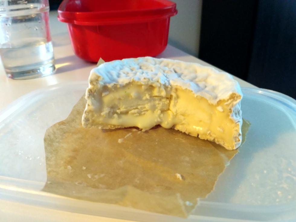 Allego una foto del secondo brie. Come vedete é molto meno cremoso del primo, ma il retrogusto é ugualmente amaro.