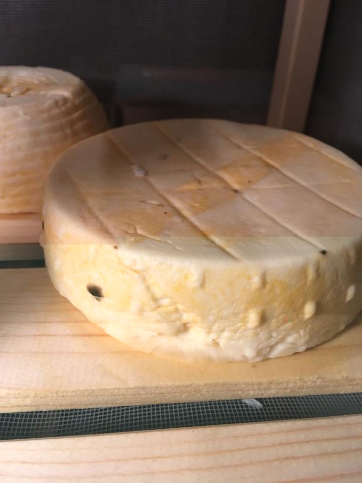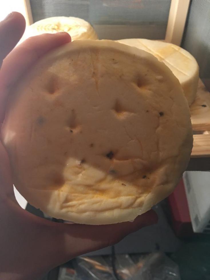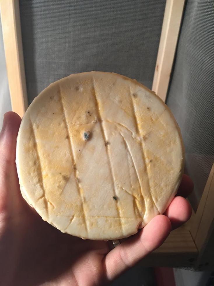 Buonasera a tutti, sono un nuovo iscritto del forum ma in realtà vi leggo già da diverso tempo  Ci tenevo a fare i complimenti a tutti i membri per la pazienza e la disponibilità, ho potuto trovare moltissime informazioni su questo forum, dove spesso ho trovato un valido aiuto e nella risoluzione di qualche problemino o dubbio essendomi affacciato da pochi mesi alla categoria lattiero-casearia. Ho finalmente deciso di iscrivermi per chiedere il vostro aiuto relativamente alla stagionatura di un formaggio attualmente nella mia cantina... Premetto che ho già cercato all'interno della sezione e ho trovato qualche informazione che mi ha convinto abbastanza di essere, ahimè, su una pessima strada; tuttavia per sicurezza e anche un po' per speranza sono qui a chiedere il vostro aiuto per capire cosa ho sbagliato e come rimediare, se si può già per la stagionatura in corso altrimenti per le prossime prove. Ho lavorato circa 8 litri di latte crudo di mucca per ottenere un formaggio da stagionare con l'obiettivo finale di qualcosa di simile ad una toma piemontese. Ho effettuato la salatura in salamoia (20%) e una volta pronto ho posizionato il formaggio a stagionare in una gabbietta in legno nella cantina della cascina (circa 10 giorni fa); la temperatura della cantina è stabile a 16°C con un'umidità secondo me abbastanza alta ma senza tracce di umidità su soffitto o pavimenti ne umidità sugli oggetti/scatoloni di cartone presenti in cantina (al momento non ho un igrometro per misurarla, penso però che lo comprerò a breve in quanto misurare l'umidità a "sensazione" non lo ritengo un metodo troppo affidabile). Dopo i primi giorni sulle forme ha cominciato a formarsi una patina arancione accompagnata da un leggero spurgo sulla parte inferiore (premetto che le giro tutti i giorni). Da ieri sono comparse inoltre le prime muffe, di cui alcune di colore nero che a quanto ho capito non sono di buon auspicio. Per chiarezza allego qualche foto delle due forme. La combinazione di questa patina di colore arancione e la comparsa di alcuni puntini di muffa nera mi fanno pensare che qualcosa non vada, forse per colpa del legno su cui sono poggiate o magari dell'eccessiva umidità della cantina. Quali sono i vostro pensieri al riguardo ? Come vi comportereste voi in questa situazione ? Questo week-end pensavo di provare a pulire le forme con una salamoia al 20% e magari sostituire il legno su cui poggiano con uno di diverso tipo (quale tipo consigliate ?)... Faccio bene secondo voi o dovrei comportarmi in maniera differente ? Vi ringrazio molto in anticipo per la disponibilità e ovviamente rimango a disposizione per chiarire qualsiasi dubbio o rispondere ad eventuali domande. Sono sicuro che con il vostro prezioso aiuto riuscirò a capire cosa non funziona e correggermi per i prossimi tentativi. Grazie mille a tutti