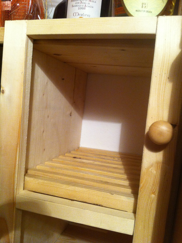 Ho ricavato (con materiali che avevo in casa visto il metro e mezzo di neve che mi attenaglia...) un MICRO armadietto di stagionatura (tiene 4 forme da 1 Kg) nella MICRO cantina che mi ritrovo (manca ancora la retina di chiusura che non avevo a disposizione fra i materiali di recupero).