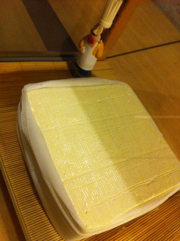 Ho atteso 5', ho mescolato delicatamente la cagliata per 3' e atteso altri 10'. Poi ho mescolato nuovamente per altri 3' e atteso 10' prima di estrarre la cagliata e metterla in forma.