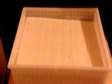 dopo 30 minuti, al primo rivoltamento la cagliata è appena appena entrata in fuscella e io rivolto