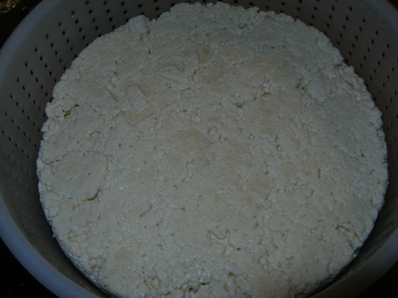4) quando ho tolto il siero prima della cattura ho tolto un po' di cagliata per fare due piccole caciottine esperimento (di cui parlerò in separata sede se vengono commestibili) che ho messo sotto acqua a 80° per 15' e sono venute bene. invece il resto si è trasformato in quella massa che non si vuol compattare.