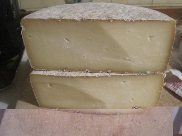 battaglin76 ha scritto: Ieri ho fatto uno t.cottino da10,5l. Peso prima del sale basso..1,2kg. Ho usato un bel siero acido da parmigiano, infatti dopo 15' ho spinato. Solito problema della cagliata che si compatta mentre tolgo il siero e metto l'acqua, restano sempre dei grumi..e' un po' lo stesso problema col caciocavallo ..adesso e' nel sale e pensavo tenerlo 20h(20baume'). Cmnque promette bene eccolo all'apertura 2 mesi e rotti, veramente ottimo ha il sapore di un parmi mezzano ma senza la granulosità, è pastoso e anche il sale è azzeccato. stra-contento. Il neo è che, come si vede nella seconda foto, mi è partita una crepa leggera sullo scalzo (ho avuto un problema di corrente in cantina per 2 giorni) dovuta anche al discorso di sopra cioè i grumi di cagliata. due considerazioni: 1. qualcuno dei nostri "pecorai" ha provato a farlo full pecora? 2. tsuna perché non lo "brevetti" seriamente?