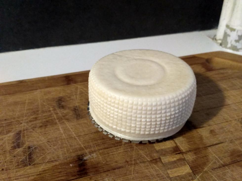 Commento file: Dopo la salamoia... si vede il segno del tappo che usato come "spessore" per tenere la forma sott'acqua :)