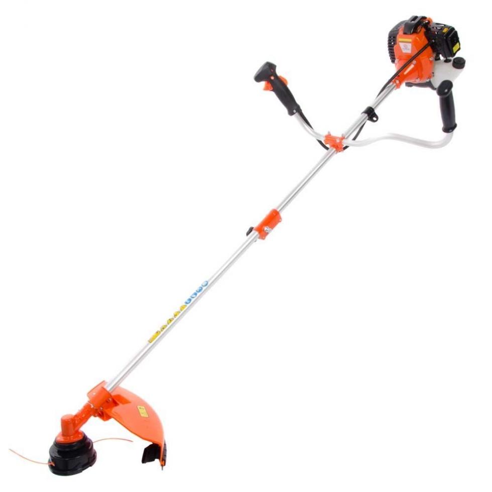 Finalmente sono riuscito ad utilizzare il nuovo dece per la prima volta. Prima di avviarlo ho ingrassato bene sia la coppia conica che il giunto di connessione tra le due metà di asta, ed infine ho versato un po d'olio dal foro della candela giusto per tenere lubrificato il pistone al primo avvio. Come olio per la miscela ho utilizzato olio sintetico Stihl al 3.5%. Devo dire che in virtù del prezzo (89€ spedito), mi ha sorpreso per la potenza e la conseguente velocità per tagliare erba alta fino a 80cm, ed in certi punti era una cotica aggrovigliata in quanto non veniva tagliata da più di un anno. Se l'è mangiata in scioltezza. Non è neanche troppo rumoroso, trovo però scomodo il manubrio doppio. L'ho usato per circa 4 ore ma con frequenti interruzioni. Ora c'è da vedere se manterrà queste prestazioni a lungo o si romperà prematuramente. Un'immagine presa da internet: Allegato: