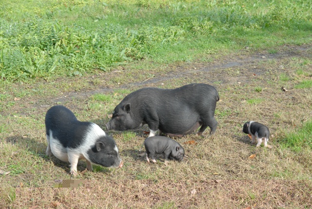 Posso parlare con quel poco di esperienza che ho, con 5 parti di maialini nani alle spalle. Vanno continuamente in calore e producono cucciolate di cui non ti accorgi fino all'ultimo. Il numero dei piccoli è variabile, ma di solito le più giovani ne fanno meno, io ho avuto la meno numerosa di 4 e la più numerosa di 8. Il fatto che la femmina sia aggressiva o meno è dato principalmente del rapporto che hai con lei, a prescindere dalla gravidanza dovresti fartela amica un pò di più  (le mie sono tipo cani che arrivano quando le chiami e mangiano dalle mani), non mi hanno mai mostrato aggressività anche quando mi infilavo nel nido con i piccoli appena nati, ma mi si affiancavano subito se un piccolo emetteva anche uno squittio minimo.....solo una volta mentre "salvavo" un piccolo che era uscito dal box la scrofa mi ha attaccato perchè giustamente il piccolo si è messo a gridare come se lo stessi sgozzando  . Quindi dalla mia esperienza io direi che non sono aggressive ma che non vanno provocate, e che comunque dipende dal soggetto. I piccoli si abituano a essere toccati se lo fai da subito e costantemente, ma non amano essere sollevati da terra. Importante: io non ho fatto iniezioni di ferro ai piccoli perchè stanno fuori, sulla terra, ma ho dovuto dare il mangime per scrofe in gravidanza/allattamento (da prima del parto a un mese dopo il parto) perchè le mie maialine, pur vivendo in libertà, hanno sofferto di eclampsia. L'eclampsia è piuttosto pericolosa, i sintomi sono evidenti: la femmina inizia a barcollare e infine non riesce più a reggersi in piedi, la cosa può portare a danni celebrali. Dopo la prima volta, in cui purtroppo la femmina non si è più ripresa perchè curata troppo tardi, sono stata in campana e sotto consiglio del veterinario ho fatto delle iniezioni di calcio alle madri alle prime avvisaglie per arginare il problema. In caso di soli uno-due cuccioli non dovrebbe presentarsi. Il parto avviene naturalmente, fanno da sole e generalmente sono buone madri. Ti accorgerai dell'imminenza dell'evento da alcuni segnali: le mammelle che arriveranno a toccare terra e la preparazione del nido, che di solito preparano all'ultimissimo (al più il giorno prima). Poi si occuperanno dei piccoli allattandoli ad intervalli regolari; i piccoli sono delle cosine minuscole e saltellanti, che amano sotterrarsi nella paglia del nido (mi raccomando un bel nido imbottito in questo periodo freddo.....il freddo è una delle poche cause di morte) i piccoli sono subito "puliti", non sporcano dove dormono perciò ci deve essere uno spazietto dove possano recarsi a fare i bisogni.....i miei stanno in box, perciò il nido è in un'angolo e i piccoli si spostano prima di poco e poi man mano di più, mi viene da ridere quando li osservo farlo  . Di solito non ci vuole molto tempo perchè inizino a seguire la madre e a un mese già mangiucchiano il cibo insieme a lei (il mangime che ti dicevo e i cereali). Non ho mai avuto piccoli morti per schiacciamento da parte della madre, nel video puoi vedere con quanta attenzione si sdraia per allattare; c'è da dire però che le condizioni di spazio e/o sistemazione possono influire. Fai attenzione perchè vanno in calore presto e si accoppiano tra fratelli o con i genitori se li tieni tutti insieme. Infatti la tua ha nove mesi ma tenendo conto della gravidanza piuttosto avanzata, sarà andata in calore a 5-6 mesi.....a me è successo che un cucciolo di 3 mesi, dico 3 mesi, abbia coperto la madre  ......e io che credevo fosse ancora un lattone! Se ho dimenticato qualcosa aggiungo o se hai dubbi chiedi pure http://www.youtube.com/watch?v=uYgPdvuGSpA