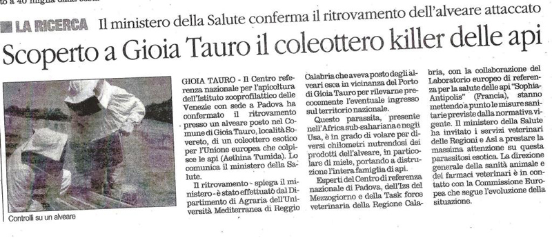 Piove sul bagnato, come si suol dire. Non bastava la velutina che sta scendendo dal nord, adesso è stato rinvenuto in provincia di Reggio Calabria anche il coleottero degli alveari, Aethina tumida: http://api.entecra.it/index.php?c=pp&id=191
