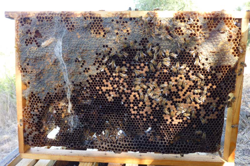 Altra cosa da controllare è se ci sono api morte nelle celle, morte dentro oppure morte nel tentativo di uscire, con la ligula estroflessa (lingua di fuori), in questo caso lo spopolamento è dovuto a forte infestazione da varroa.