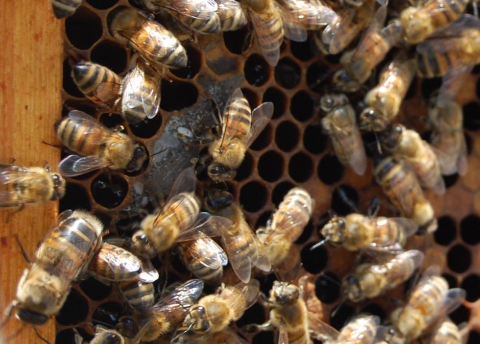 Buongiorno, in una piccola porzione di favo oggi ho visto qualcosa di molto strano. C'erano alcune celle piene di una sostanza molto dura che sembrava terriccio solido con qualche sassolino in mezzo, come da foto sulla parte sinistra. Qualcuno sa dirmi di cosa si tratta? Non vorrei che fosse sintomo di qualche malattia o della presenza di parassiti.