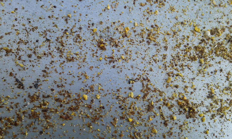 In effetti l'analisi che avete fatto è condivisa, quello che (ripeto ad occhio di inesperto) mi sembra abnorme è la quantità di varroa che sta cadendo dalle api dell' alveare 2 ... considerate che il vassoio dell' alveare 2 è stato pulito 4 giorni fa! Vi allego foto dei vassoi fatte oggi in occasione dell'integrazione di sciroppo (Apiinvert) che sto dando alla due. A proposito di sciroppo, ho cercato di capire la composizione di Apiinvert ma dicono solo " consiste esclusivamente di saccarosio, fruttosio e glucosio" cercavo di capire se vi è dentro del limone o acido citrico per accelerare l'invertasi. ma come al solito il nulla ...e poi parliamo del contenuto delle etichette ... voi avete qualche info? grazie mf