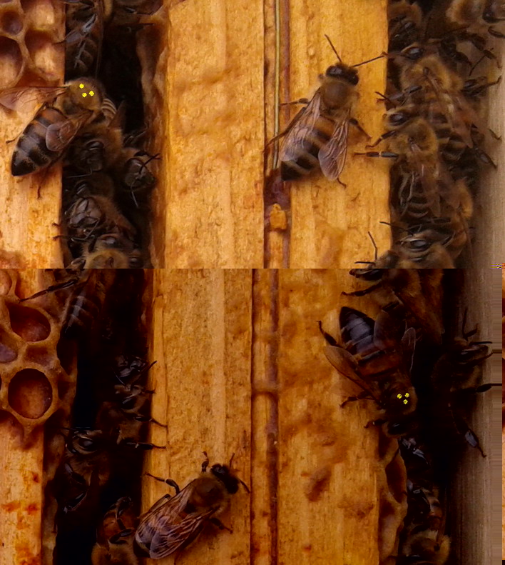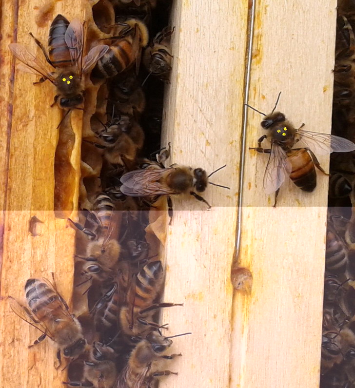 I tre puntini sul corpo ape, in foto, li ho fatti io per evidenziarle.