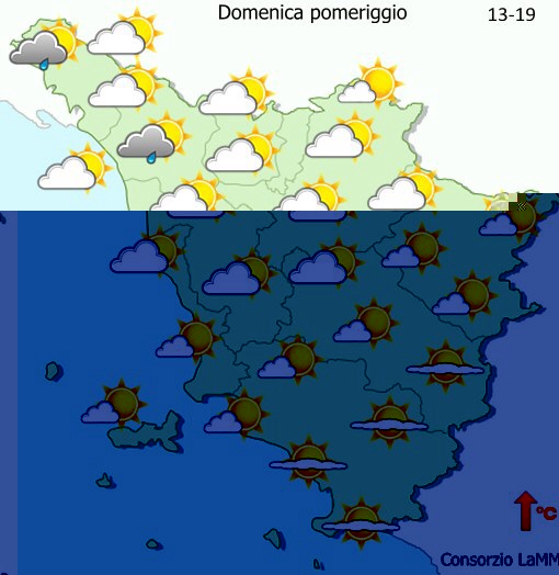 Rispetto ai due giorni precedenti di vento e pioggia frequente (circa 50 mm nei due giorni), ma con temperature massime relativamente alte (intorno ai 14 o 15°C), oggi il cielo è poco nuvoloso e niente pioggia, ma la temperatura max è calata intorno ai 12°C