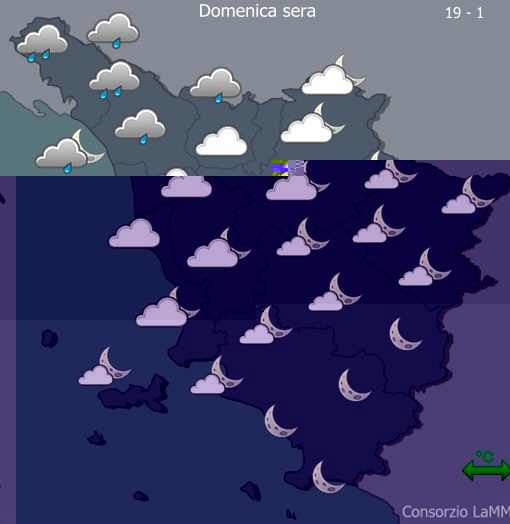 Al momento scroscia e domani sono previste 6 gocce di pioggia.