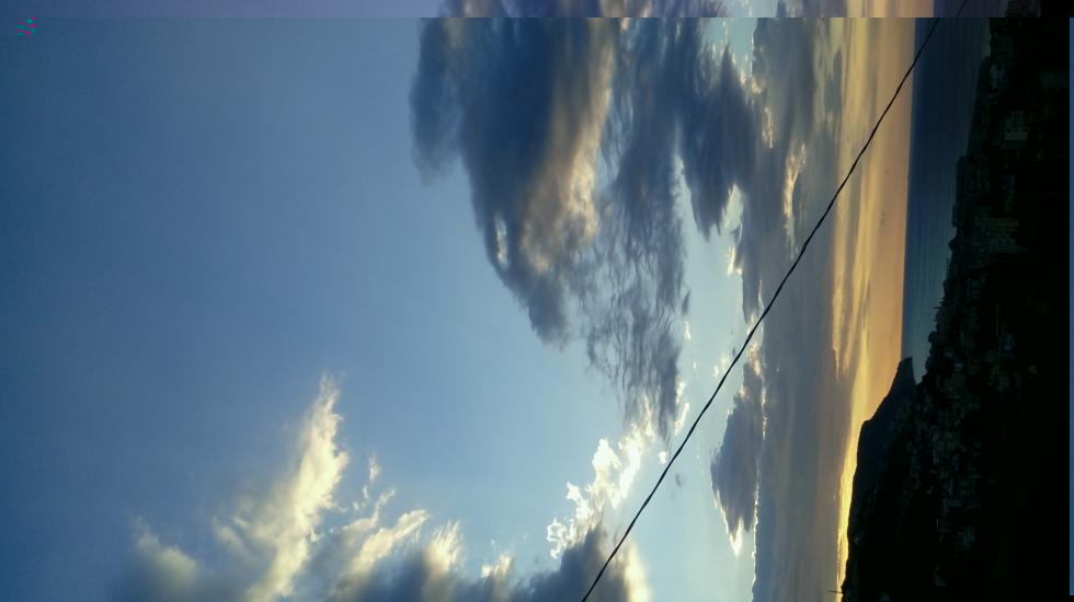 Un vento forte da stanotte ha fatto calare leggermente la temperatura a 22 gradi. Sole tra le nuvole.