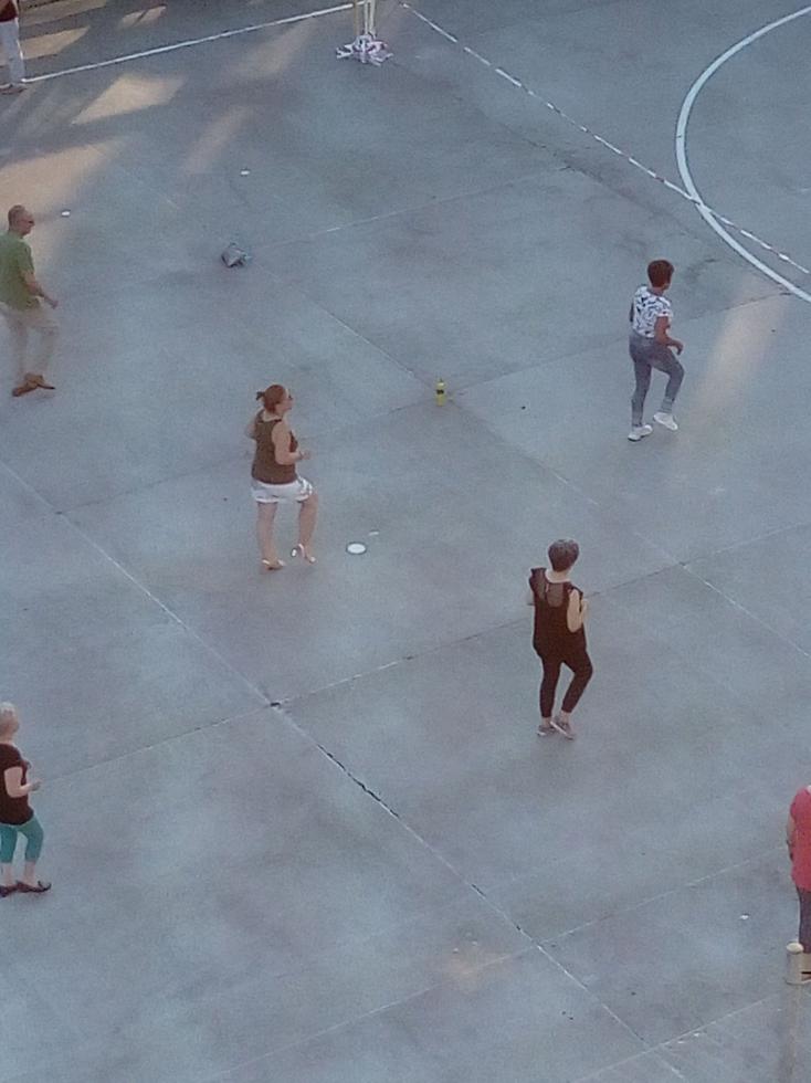 Qui idem.....afa afa afa. Ci aggiungiamo le scuole di ballo che per due giorni consecutivi alla settimana e per due turni consecutivi (ieri ed oggi), nel campo giochi della parrocchia.....fanno scempio delle nostre orecchie. La prima ha un istruttore moderato che con poche indicazioni e con bella musica li conduce. La seconda con istruttore che grida troppo e musica così così, ci perseguita coi i suoi 1.2.3.4--- 5.6.7.8. Ci tocca serrare tutto, condizionatori e ventilatori accesi. Come al solito....non c'è pace tra ..."le olive"'....
