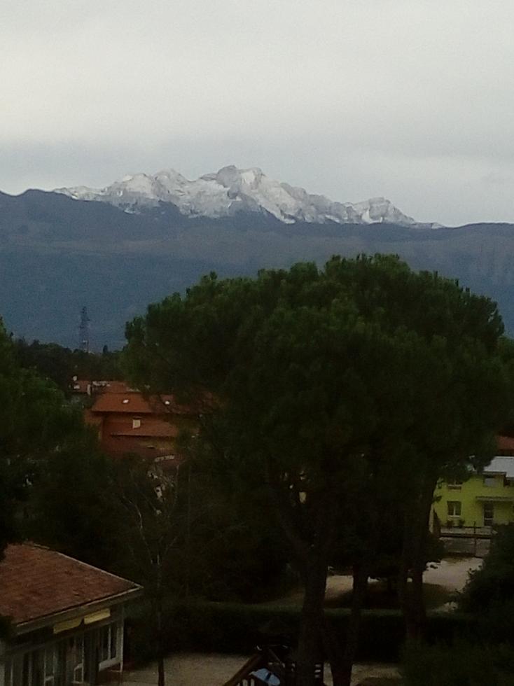 Ieri anche quì giornata di sole...almeno fino alle ore 13. In borgata si stava bene al sole. Ho finito o quasi di proteggere ulivi con spaventapasseri: una canna( o due) che sovrasta la chioma con bande di plastica a strisce (riutilizzo di teli da pacciamatura vecchi e da buttare). Nei prossimi giorni farò un ritocco con dischetti (CD) e lattine vuote. Bisogna difendersi!! In pianura i frutti pendono fino a seccare sugli alberi (mele, pere, Caki ecc.). Quì attaccati da tutto....cadono marciscono, puzzano a terra. Ho finito di raccogliere mele golden....rimasugli belli di sotto e mangiati dai calabroni di sopra. Invio una foto del Monte Cavallo fotografato dal mio terrazzo ieri. Però con tutta la pioggia di stanotte fino ad ora.....si vedrà l'incremento di neve, quando torna il sereno. Penso che tutti quelli che hanno i monti attorno, nel centro nord, abbiano la stessa situazione. Motho, hai fatto bene a girare in bici. Cao