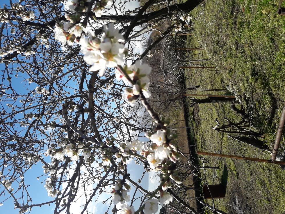 Oggi tempo ventoso l'etna si è riempita di neve, il mio mandorlo è fiorito e se arriva il freddo, non raccoglierò mandorle.