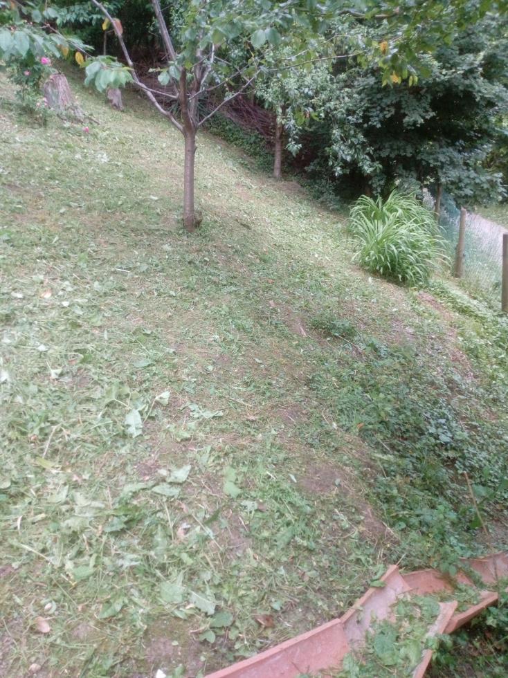 Ciao Bepi. Fa invidia vedere la tua erba cosi verde, viene voglia di strofinarsi dentro, nella vita non si può avere tutto. Salvo, ieri ho falciato un altro terzo di terreno in salita, non so se puoi tuffarti ma un paio di scivolate da seduti si potrebbero fare Anche io mi associerei....fra giovani... Non so come si potrebbe misurare la velocità di falciata, forse mq/ora. Lì ho fatto un'ora abbondante e quella rampa la divido in tre tappe. Il difficile è camminare. Dopo la rampa ho fatto un'ora col tosaerba in zona abbastanza in piano e la mattina ho fatto 18 litri di trattamenti con fungicida ( di cui 8 lt con dodina per gli ulivi). Solito venticello fastidioso. Ciao a tutti
