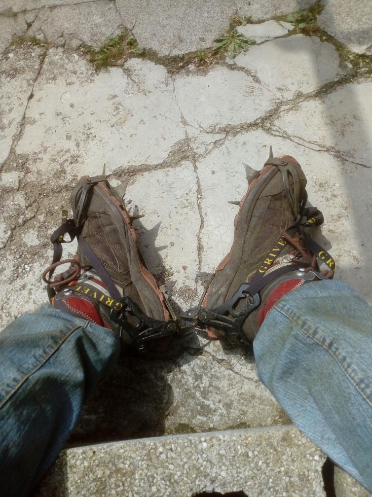 Poiché il mio ciglio strafa é alto mediamente mt 1,70 dal piano asfaltato ho indossato i ramponi per sicurezza.