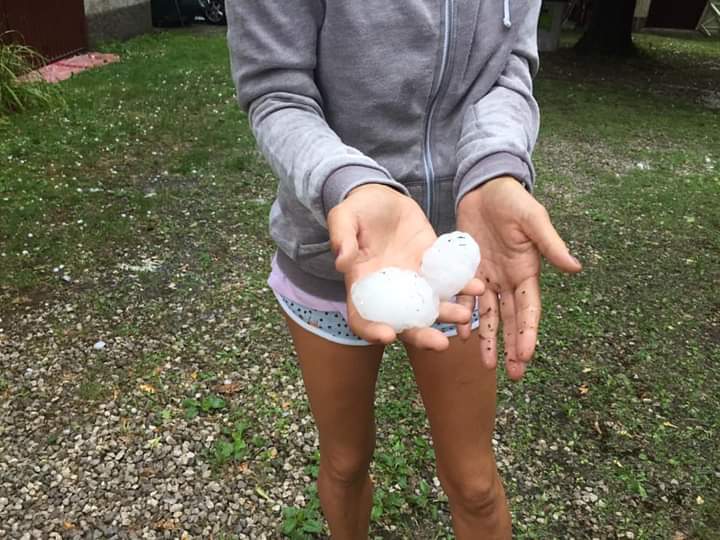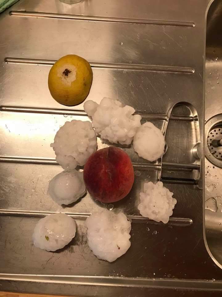 Ciao ragazzi buona domenica. Come dicono le previsioni....."prudenti".....piogge e temporali....qua e la..... Per il momento quà qualche raro scroscio di pioggia...stamattina qualche raro piccolo chicco di grandine però nel contempo là (quì attorno) qualche chicco grosso, come da foto. Non ha rinfrescato.