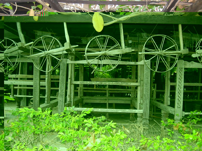 L’affascinante casa interamente in legno su due piani di Mrs. Saeng-da, oggi quasi museo, è un luogo deserto abitato dalla solitaria, silenziosa e non più giovane figlia dell’intraprendente tessitrice e da qualche saltuaria collaboratrice come quella della foto. La figlia della figlia e cioè la nipote di Mrs. Saeng-da si è da tempo trasferita in città, svolge altra attività e nulla la stimola nel valorizzare un tale patrimonio.