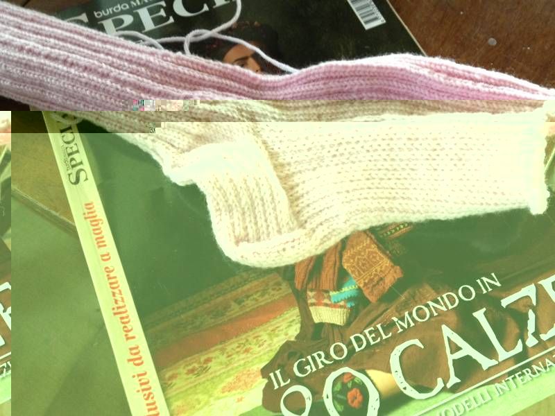 Ciao, devo rileggere con attenzione le spiegazioni sopra. Devo dire che faccio veramente fatica a capire le spiegazioni scritte ed anche gli schemi che si trovano sui giornali.. Almeno qui ci sono le foto. Vi mostro il mio piccolo assortimento di calzini in fase di perfezionamento... Chissà se alla fine me ne riuscirà una coppia di calzini usabili (ed uguali  ). Ciao ciao G