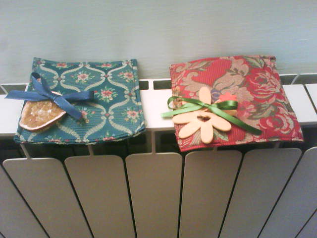 Ciao,in questi giorni,ho cucito dei "cuscinetti " profumati da porre sul termosifone o sotto la caffettiera al momento del caffè..... Praticamente ,ho pestato varie spezie.....lavanda,rosmarino,salvia,chiodi di garofano,scoze d'arancio.....che avevo seccato quest'estate.........poi ho cucito dei cuscinetti e li ho riempiti. Messi sul termosifone emanano un odore straordinario........e se ogni tanto li .....stringete si riattivano gli olii essenziali..... Vi metto la foto....x rendervi conto meglio........il tessuto deve essere tipo da tappezzeria un po' grossino.....invece se li fate x i cassetti deve essere tipo lino..... X VOI.......