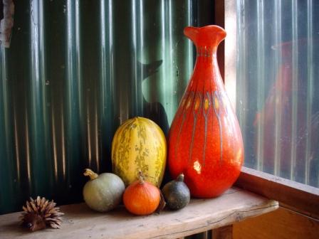quelle che vedi in foto sono le mie zucche.... :( visto che da quanto erano piccole erano inutilizzabili, le ho usate come decorazione accanto ad un vaso che la nonna voleva buttare...)