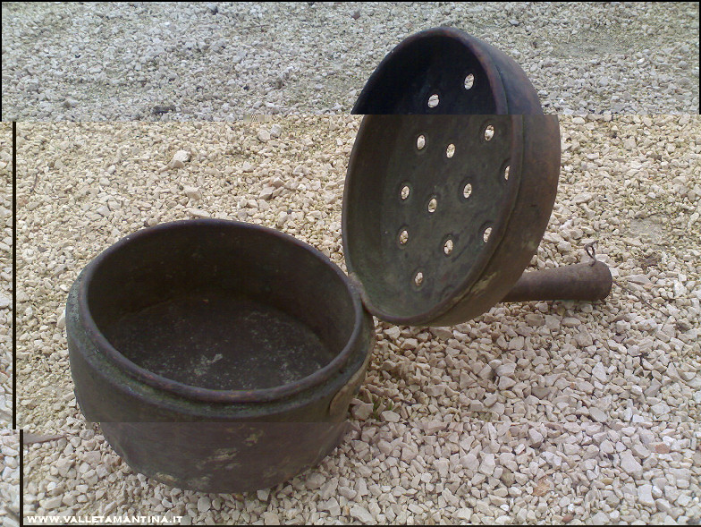 Scaldaletto in rame; all’interno veniva messa la brace e opportunamente sistemato in un armamentario in legno veniva utilizzato per scaldare le lenzuola. Allegato: