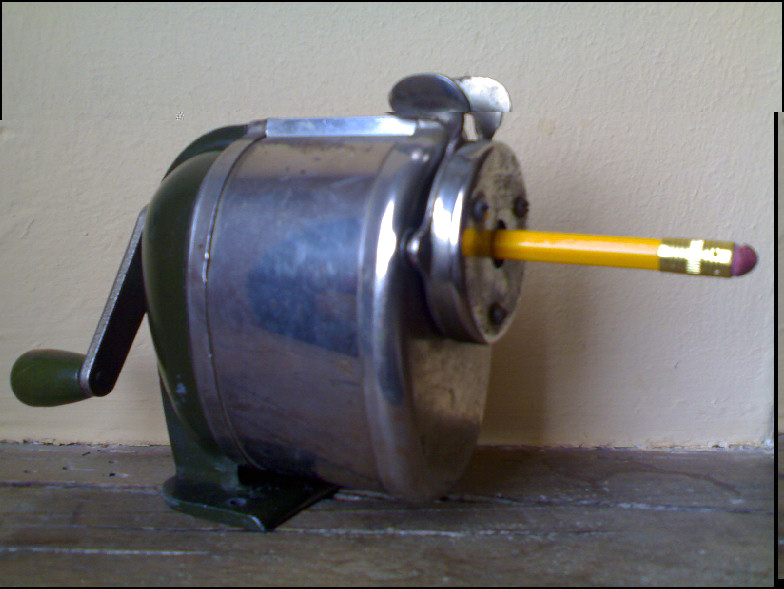 Un temperamatite da tavolo (marca BOSTON, dovrebbe essere degli anni 50/60). Allegato: