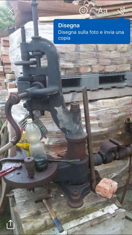 ah si? ti marca male giovanotto oggi sono in vena di metterti dietro.... questo non cel'hai! e neanche le ruote del carro! sono entrambi nuovi acquisti  ... ma scusa... della carica cartucce... come fai a cambiare le misure?... la foto ritrae il mio trapano a colonna a manovella!! adesso è a bagno con gasolio per vedere di far tornare a girare gli ingranaggi.... secondo voi a che anni risale?.. appena riesco metterò delle foto migliori piu dettagliate