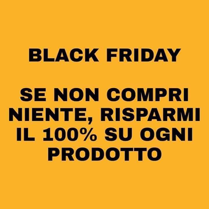mhanrubalamotho ha scritto: in ogni posto che entri appena osservi qualcosa ti balzano addosso proponendoti sto black friday. Siamo ...lapidati..... dagli annunci di sconti Compra tre pezzi (vestiti, attrezzi ecc.) ed il meno caro lo paghi un euro Oppure....."vieni da noi che ti caviamo l'IVA....tutto a -20%" Oggi mi ha scritto la mia assicurazione che, se passo con loro per luce e gas....mi danno un buono spesa Coop di 80 €.
