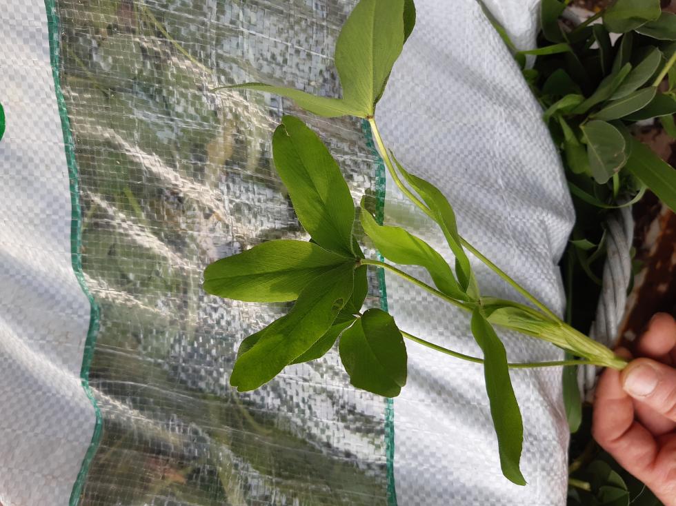 sembra quasi un trifoglio gigante anche dalle mie parti è abbastanza comune ma ignoro come si chiami ,ai miei conigli e galline piace molto