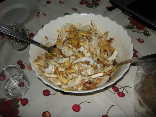 Anch'io ho passione e curiosità per la cucina magari si potrebbe mettere una sezione di ricette non banali fatte o rifatte da noi con i prodotti coltivati (per la maggior parte).... oggi ho fatto le seppie con carciofi e funghi Bollire la seppia al dente e lasciarla raffreddare e tagliarla a listelline molto sottili. Pulire i carciofi eliminando le parti dure, tagliarli sottili e immergerli in acqua e limone, mentre si preparano, poi strizzarli e metterli in solo limone. Pulire bene i funghi eliminando i gambi se sono duri, tagliarli a fettine sottili e metterli a riposare con limone. Sgrondare dal limone gli ingredienti strizzandoli bene unire in una terrina e condirli con olio e sale.in effeti ho comperato tutto: le seppie non so come pescarle, i carciofi sono ancora alle prime quatro foglie e i funghi non sono ancora nati Allegato: