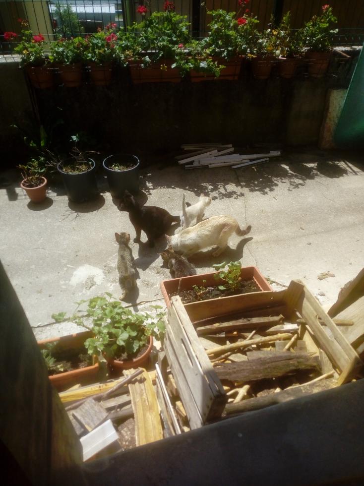 Buon fine settimana a tutti. Molti fuggiti verso il mare..? Io a casa e in città a fare spese e preparasi alla gita di domani. Si va a tagliare e stivare un pò di legna per l'inverno. Venerdì per eccesso di piantine comprate, ho dovuto preparare un pò di aiuola supplementare...vangando, concimando e trapiantando "drio man" che, tradotto in italiano si dice "Dietro mano"  )...vi farò sapere come va. Intanto vi mostro i gattini rimasti di due covate a torno a fasa mia...cerco di adottarli ma sono paurosi e mi sfuggono. Come tanti altri cresceranno in giro e farnno prole. Poi come promesso foto delle mie piantine. Oggi giro di Fernet Branca o Ferro China Bisleri...c'é molto da digerire Ieri e partita le lettera per intimorire il Consiglio europeo  ...siamo a pochi punti di distanza dalla Grecia.