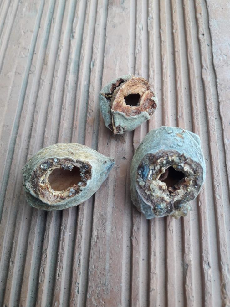 Quei fori li trovo sulle noci cadute a terra e sono degli scoiattoli