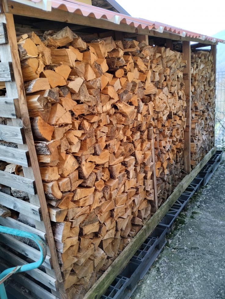 io di solito uso il calibro  per accatastarla. i tondini è meglio spaccarli bruciano meglio con fiamma più alta. comunque quando accatasti se la legna non è ancora ben stagionata è meglio metterla un pò alla rinfusa passa più aria. ovvio che occupa più spazio. io riesco ad accatastare sui 40 q.li in una legnaia e 20/25 in un'altra,avrei altro posto ma è scomodo per accatastare