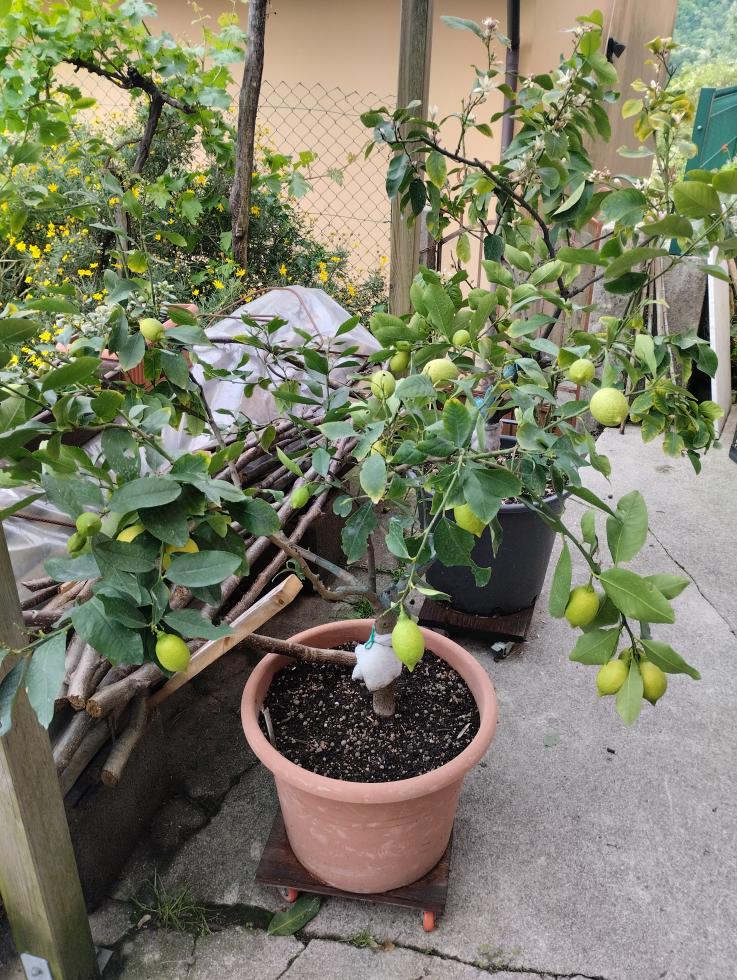 I miei sono a fiore ed hanno preso tutta la pioggia. Una parte cade poi avviene la cascola dei frutti allegati. La pianta si regola da sola in base alla forza.conta anche la situazione climatica, troppo caldo, umido,vento ecc sono fattori che contribuiscono alla cascola dei frutticini.ma il limone fiorisce più volte , minimo 2.
