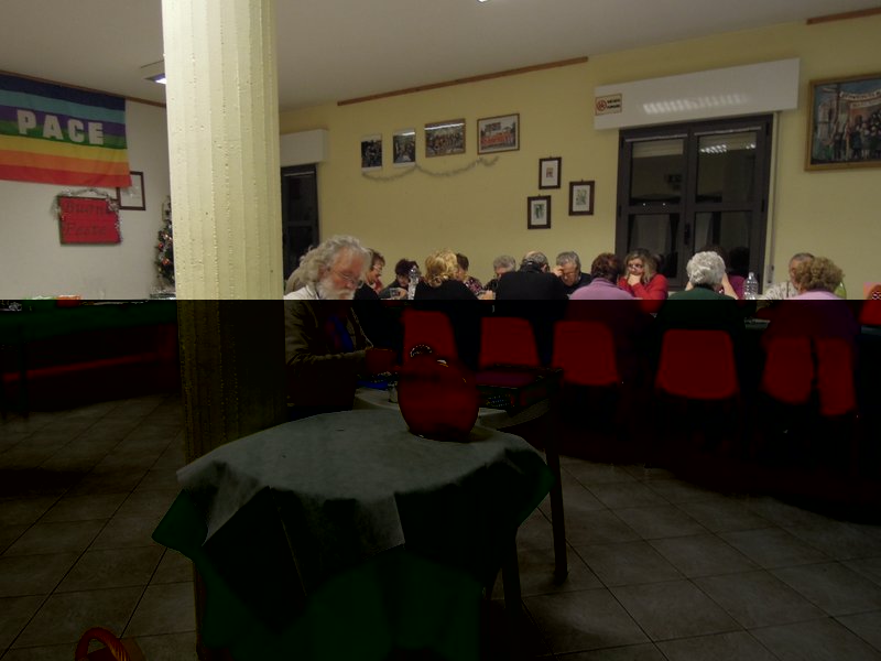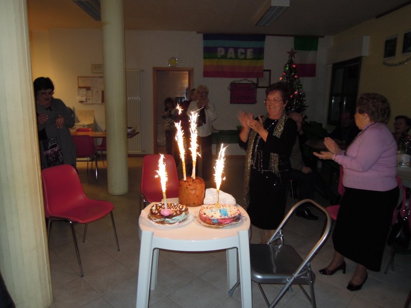 l'ultimo dell'anno ho organizzato la cena al centro sociale anziani abbiamo servito: antipasto salumi e sottacxeti lasagne fatte da carla e il presidente arrosto di maiale fatto da me melanzane alla piastra e tanti dolci.... poi amaro (dei miei) molto appezzati, in effetti sono stati tutti molto contenti , con una cifra modica hanno passato una bell serata: poi tombola con ricchi premi la carla serve l'arrosto Allegato: