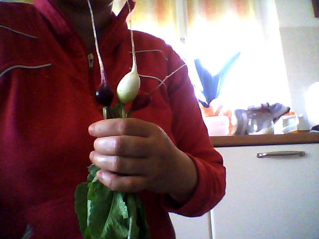 se non avessi buttato il lumachicida l'orto sarebbe deserto! Ecco i primi frutti: un mix di ravanelli succosi! Ne ho anche uno aranciato!