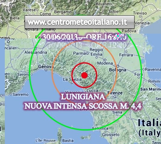 ....non finiscono più ... Terremoto Lunigiana 2013, una nuova intensa replica dopo il sisma dello scorso venerdì Alle ore 16:40, una nuova intensa scossa di terremoto è stata avvertita distintamente in Lunigiana. Secondo quanto riferisce l’Istituto di Geofisica e Vulcanologia, il sisma ha avuto un’intensità pari a 4,4 della magnitudo locale e si è verificato ad una profondità di 9,8 chilometri. Le coordinate relative all’epicentro riportano proprio al comune di Minucciano, uno dei più colpiti a seguito della scossa dello scorso venerdì. Paura anche nei centri di accoglienza che sono stati predisposti a Fivizzano e Casola in Lunigiana. http://www.centrometeoitaliano.it/terremoto-oggi-lunigiana-nuovo-intenso-sisma-al-centro-nord-minucciano-30-06-2013/