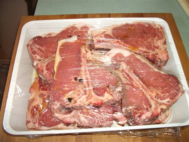 e per finire ed ha ancora appetito le fiorentine.........non sono proprio come le volevo ma pazienza Nell'altro reparto si sta preparando una vasca da bagno di pasta fredda con pomodorini ed altro, antipasti di vari tipi, Dalla cantina è già stato fatto il prelievo dei vini: cartizze, cataratto per chi vuole il bianco,morellino di scansano ,nero d'avola Placido Rizzotto terre confiscate alla mafia, spumante a finire ovviamente non mancheranno i dolci
