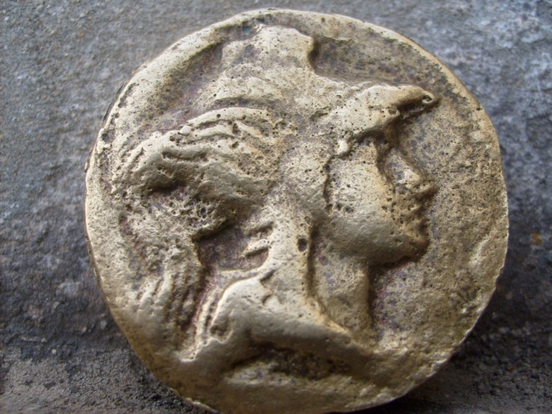 Alcuni anni fa,quando ancora avevo il ristorante,un mio dipendente (Lucio Esposito,scrivo il nome col suo consenzo) mi rivelò,che zappando nel suo terreno qui a Procida,trovò questa moneta,sapendo della mia passione per internet cercò il mio aiuto,io la presentai su vari siti di numismatica,ma nessuno ci seppe dire niente,l'unica cosa che riuscimmo a scoprire è che c'era un'altro utente con moneta identica e con il nostro stesso problema,i vari gioiellieri interpellati volevano solo comprare per pochi spiccioli e fare poi indagini per loro conto,la moneta...direi quasi monetone,pesa quasi 40 grammi,all'apparenza in bronzo,anche se,se in bronzo avrebbe dovuto ossidare,invece è dorata come se coniata ieri. Se qualcuno ci puo dare un aiuto...che dire?? ci aiuterebbe a risolvere un vero enigma che ormai dura da anni.