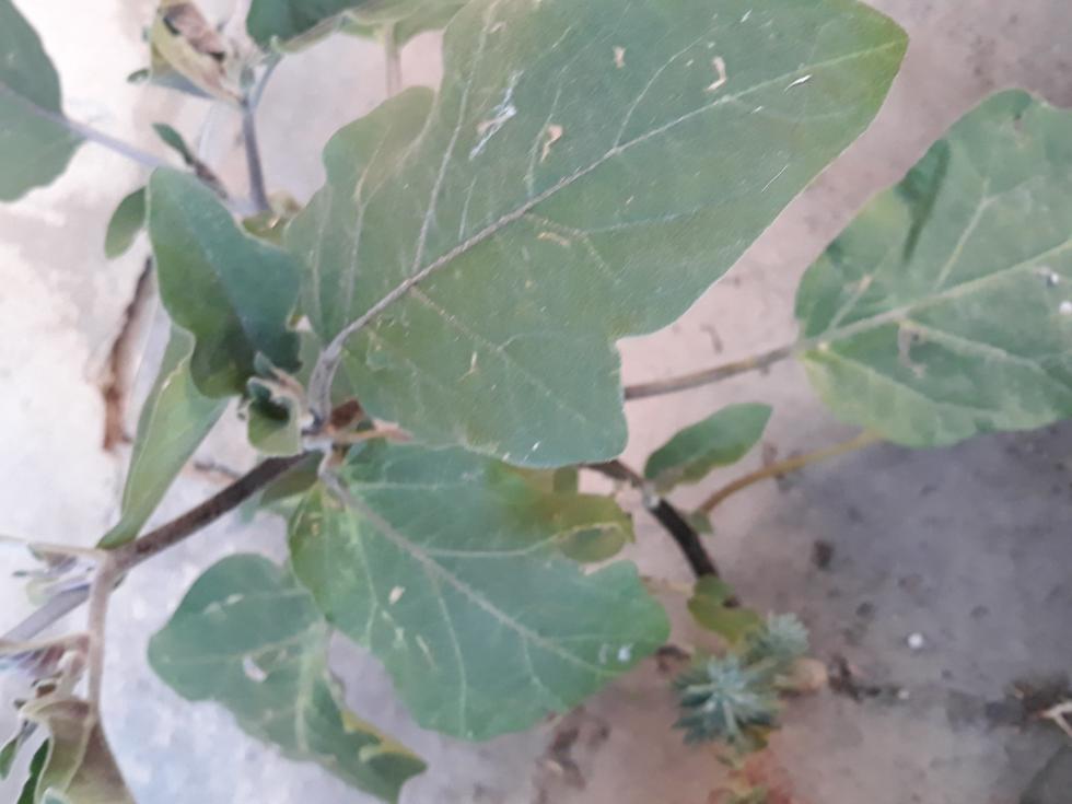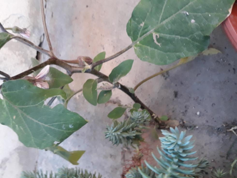 Ecco una melanzana da marciapiede. Nello specifico non so se la solanacea in questione pratichi il mestiere più antico del mondo, di certo un semino è finito in questa spaccatura ed è cresciuta. Devo ammettere con un certo scorno, che le melanzane che avevo lo scorso anno in vaso in quello stesso punto non stavano così bene. Ha prodotto tre piccoli frutti ed erano pure buoni, attualmente è un po' rovinata perché i gatti la usano come punching ball però sta ancora fiorendo.