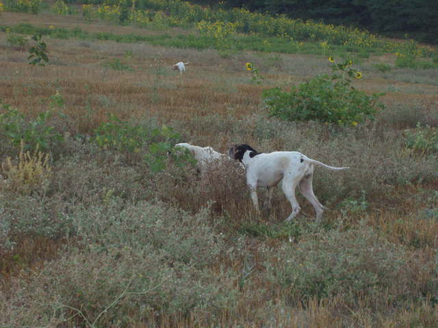 Foto a mio modo di vedere spettacolare, cinque cani in ferma e consenso: