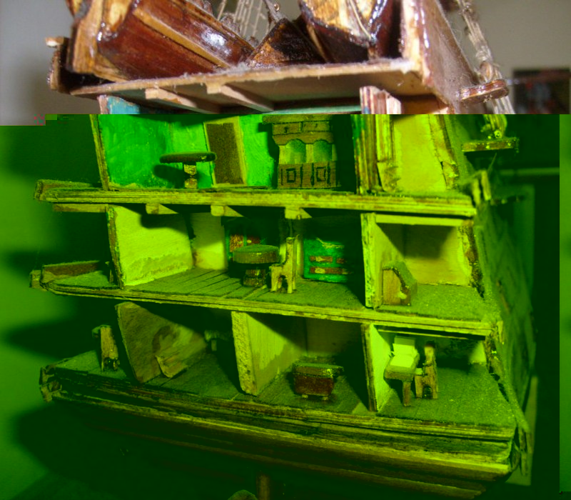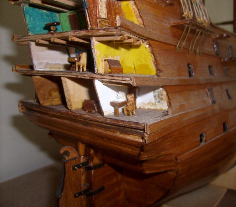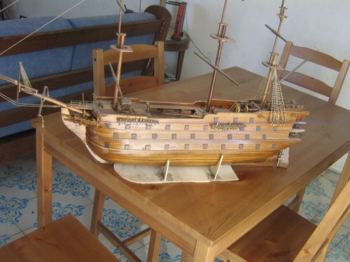 è qui Dommi,farò foto migliori,non si vedono i particolari...ad esempio,in coperta sono incastonati un po ovunque pallini da caccia di mio suocero,a mò di palle di cannone...c'è ancora molto lavoro da fare.