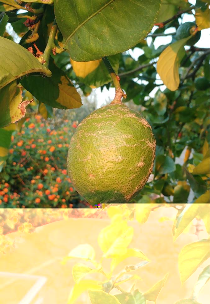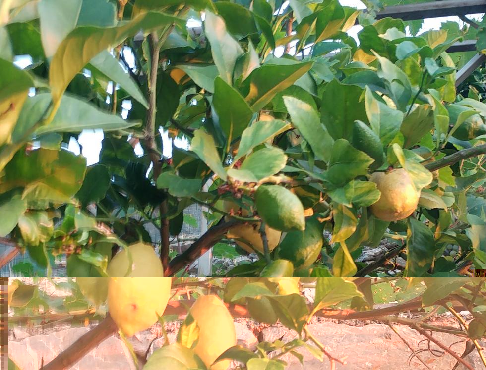 - sul limone ci sono sia gli ultimi ancora belli succosi con dentro i semi germogliati da ripiantare sia i primi,